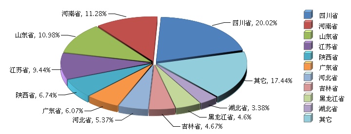 2014年度全國玻璃包裝容器制造行業(yè)主營業(yè)務收入較去年同期提升9.61%。其中四川、河南、山東三省位列三甲,四川省的主營業(yè)務收入占全國比重達到五分之一,河南、山東也都超過十分之一。其他省份中,江蘇、陜西、廣東、河北排名較高。